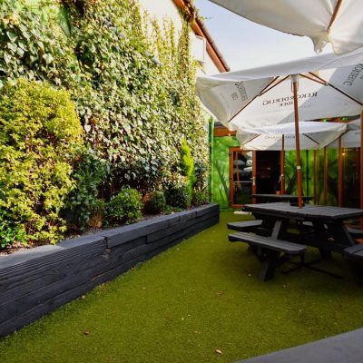 Our Courtyard garden is another jewel in our crown – surrounded on all sides by sprayed murals and a living wall, at night we light it up and it can feel like you’ve stepped into a terrace on holiday.